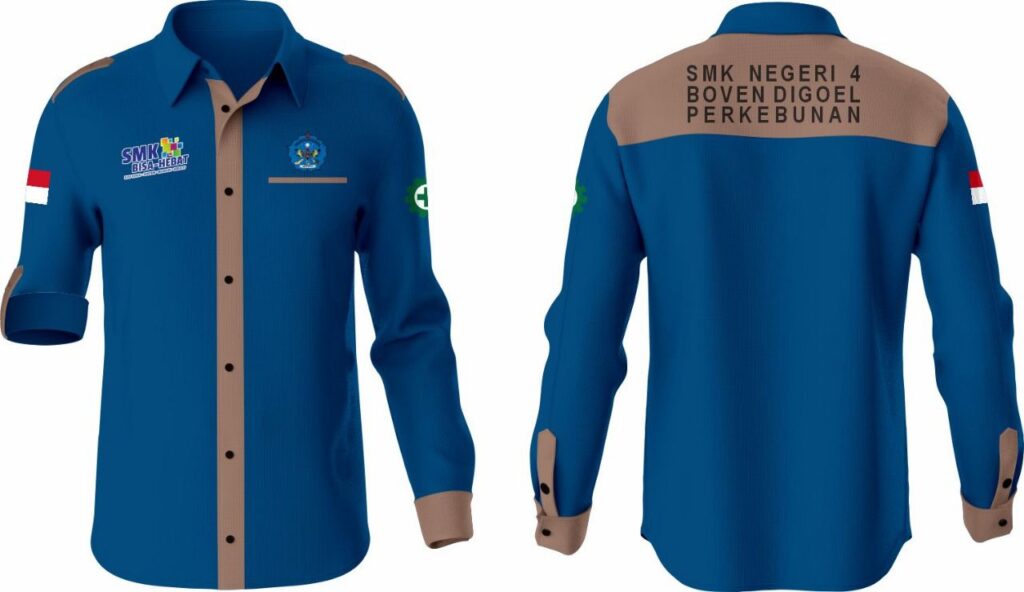 Bisa desain sendiri, pilih bahan, warna, dan ukuran sesuai kebutuhan seragam Anda.